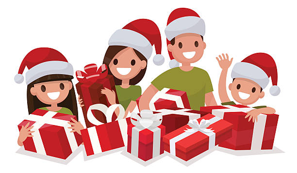 Family Giving Christmas Gifts Flat Vector Concept Stock