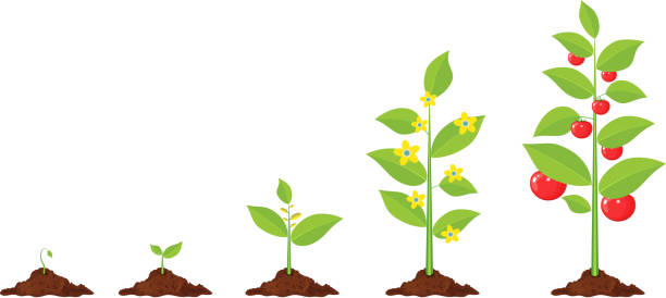 Vector Art Flat Vector Illustration With Sapling Process Drawn