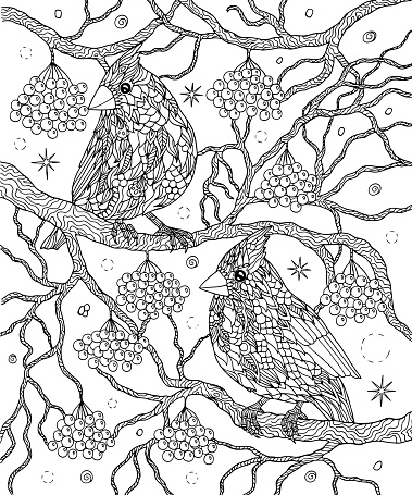 Birds And Berries For Coloring Page Northern Cardinals Stock