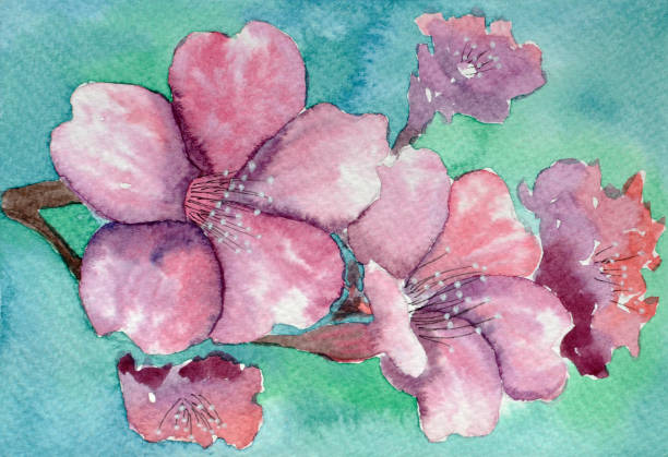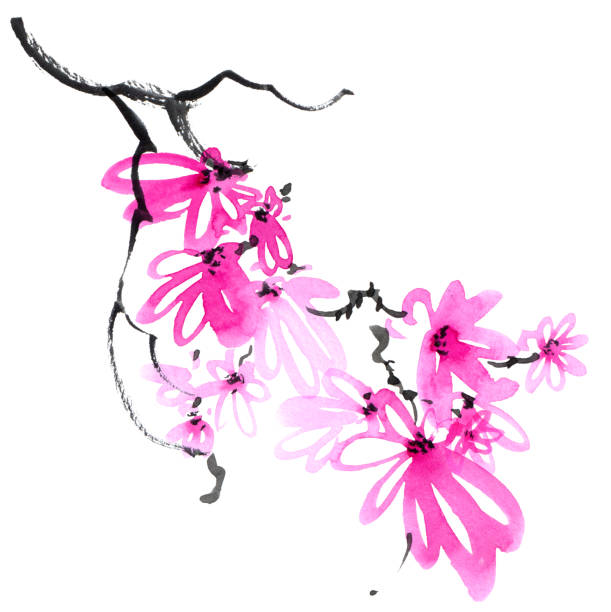 Flower Plant Branch Magenta Red Bud Watercolor Paint Wet Ink